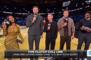 体育资讯12月14日讯 今天,解说嘉宾诺维茨基被问及若自己和文班亚马一对一谁能赢。