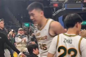 中国球员、旧金山大学后卫赵维伦最后时刻获得出场机会,上场1分钟没有运动战出手,罚球2中1,得到1分。