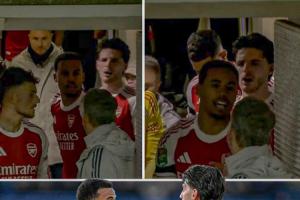 阿森纳对阵切尔西中场休息时间,赖斯与自家助教阿尔伯特发生争吵,双方随后被加布里埃尔调停。