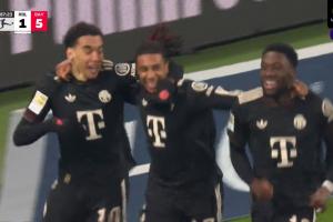 第88分钟,奥利塞破门,穆西亚拉助攻,拜仁5-1↓
