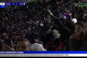 当葡萄牙体育绝杀毕尔巴鄂竞技,把皇马挤到第九后,诺坎普的球迷们疯狂庆祝。