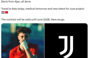 报道称艾萨德·德尼兹将在今天启程前往意大利,在明天接受体检,并在之后成为球队未来计划中的一员。艾萨德·德尼兹将与尤文签约至2028年,Here we go!