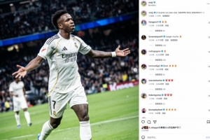 本场比赛维尼修斯破门,打破个人连续13场西甲进球荒,赛后他也在社媒晒出本场庆祝进球照片,配文写道:“至死不渝,永远支持皇家马德里!”