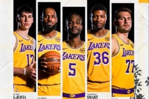 湖人:东契奇、斯玛特、拉拉维亚、詹姆斯、艾顿