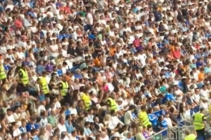 在对阵西班牙人的比赛中,一则遗留在座位上的Orange广告单成了许多观众应对炎热的“救命稻草”。