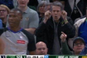 GIF-锡安关键单打被库兹马造进攻犯规 观众比划爱哭鬼表情