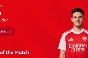 本场比赛赖斯首发表现不俗,赛后当选英超官方球迷票选全场最佳球员。以下为他在本场数据: