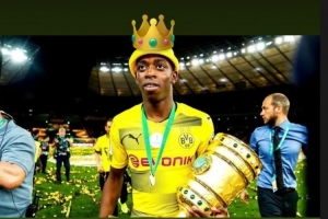 罗伊斯更新社媒动态,晒出登贝莱头戴王冠的PS照片,祝贺前多特队友获奖。