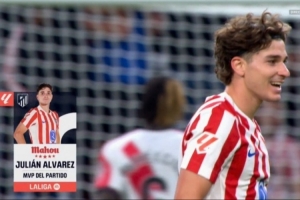 体育资讯9月25日讯 2025-26赛季西甲联赛第6轮,马竞主场3-2战胜巴列卡诺。阿尔瓦雷斯首发出战,上演帽子戏法,赛后当选为全场最佳球员。