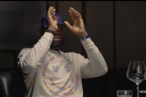 “然后,另一天有一个我参与的回合,我是面朝这边,篮筐在那边。我被犯规了,我也准备转身投篮出手,裁判就说这是一次边线发球。我问,‘你给我解释一下这为啥不是两次罚球?’他告诉我,因为我的身体和脚朝着不同的方向。那时候我已经双手合球了。我不知道这是咋回事。”