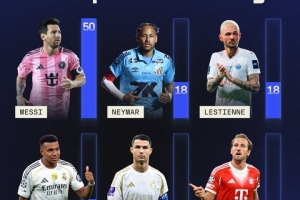 体育资讯9月25日讯 SofaScore统计了他们数据库中获得10分评价的次数排名,梅西50次遥遥领先。