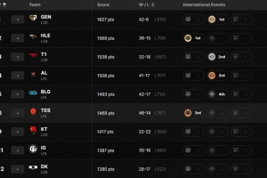 LPL/LCK战队排名分列如下: