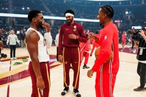 体育资讯10月8日讯 骑士官方社媒晒出了赛前米切尔、阿伦和前队友奥科罗聊天的照片,并配文:“感觉这里变冷了。欢迎回来,Ice(奥科罗外号)!”
