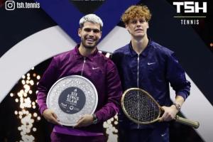 “首先,能和阿尔卡拉斯同场竞技总是令人愉悦。整个赛季你都表现得极其出色,付出了巨大努力,赢得了一座一座又一座冠军。”