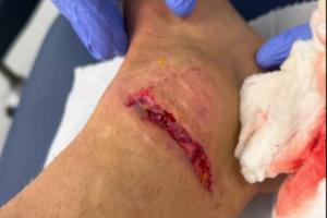 赛后迪涅晒出了自己受伤部位↓