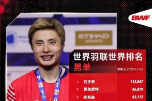 体育资讯10月21日讯 世界羽联2025年底43周世界排名发布,国羽占据三个单项的榜首,分别是男单、女双和混双。