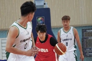 “【夏训进行时】9月5日下午,夏训中的中国女篮在海埂体育训练基地与云南财经大学男篮进行了一场教学赛,中国女篮最终以95:86取胜。这次比赛也是本次夏训中“以赛促练”的重要一环,旨在通过实战检验训练成果,磨练战术配合,提升队伍在身体对抗和快节奏攻防中的适应能力。云南师范大学实验中学师生和云南财经大学女篮队员也在下午来到了现场观看比赛。”中国篮球之队官博在图片旁边写道。