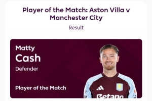 据赛后英超官方的消息,打进制胜进球的卡什当选此役全场最佳球员,在评选中获得58%的投票。