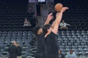 GIF-杨瀚森和夏普三分热身