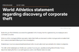 今年早些时候,世界田径联合会揭露了两名员工和一名顾问从该组织系统性盗窃资金的行为。 其中一名员工在盗窃行为被发现前已经离职,另一名员工和顾问则在内部调查后被终止合同。详细的案件资料已提交给相关司法和法律机构进行刑事调查。