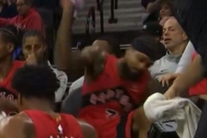 “很多人都认为他应该站起来道歉。我理解他的沮丧,他在比赛中摔倒得很尴尬,而且那是一场艰难的比赛,他们有很多失误,最终没能赢得比赛。但我不认为这是正确的回应方式。有人说他像三岁小孩一样,确实如此,这种事情经常发生在有小孩的家庭里。但我认为这不是合适的反应。他应该对此道歉,但他没有这样做,没有任何反应。我不知道他当时是怎么想的,但作为一个普通人,我认为他应该有所表示。他不应该坐在那里看着大家清理,尤其是当水溅到队友脸上时。他应该帮助清理,而不是让别人的生活变得更加困难。也许这是因为他是超级富豪,觉得这些人理应为他服务。但我们不应该轻易下结论。他看起来非常沮丧,可能只是心情不好而已。”Donnie Freeman表示。