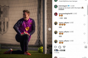 长期因伤缺席的巴萨门将特尔施特根已经回归训练场,朝着复出迈出坚实一步,他在社交媒体上晒出训练照片,配文:“很高兴回归球队。”