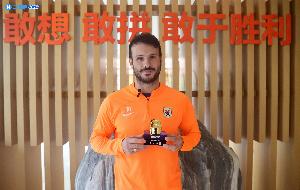 对阵国安上演大四喜的卡扎领取体育资讯第23轮最佳球员奖杯