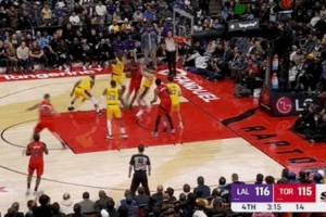 体育资讯12月5日讯 NBA常规赛湖人客战猛龙。詹姆斯助攻八村塁打成三分绝杀,解说管泽元发文: