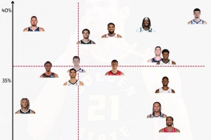 纵坐标为三分命中率,横坐标为篮下防守率。